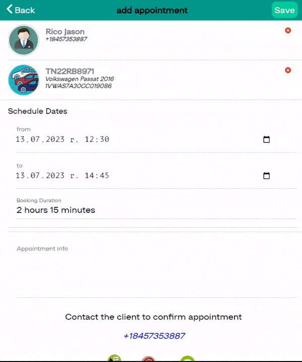 ARI now provides the convenience of automatically reminding clients about their appointments with you! You can send Automatic Reminders to customers in your shop via email or SMS. To do that – open the Appointments calendar and create an Appointment for one of your clients. Head to the bottom yellow section “Automatic Reminders for Clients.“. Then choose whether you want to send them an SMS or an email before they come to your shop.