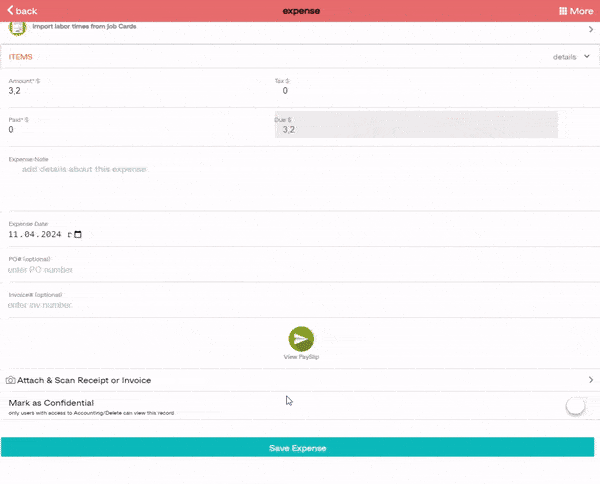 You will find this option in the Accounting menu -> Expenses view. Start by creating a new expense with the + button. Then choose ‘Attach or scan receipt or invoice‘, upload your picture or take one with your device, and hit ‘Extract data from Image.‘