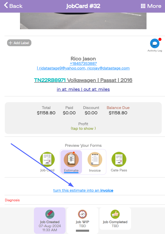 Create a Purchase Order from the Job Card or an Invoice/Estimate
